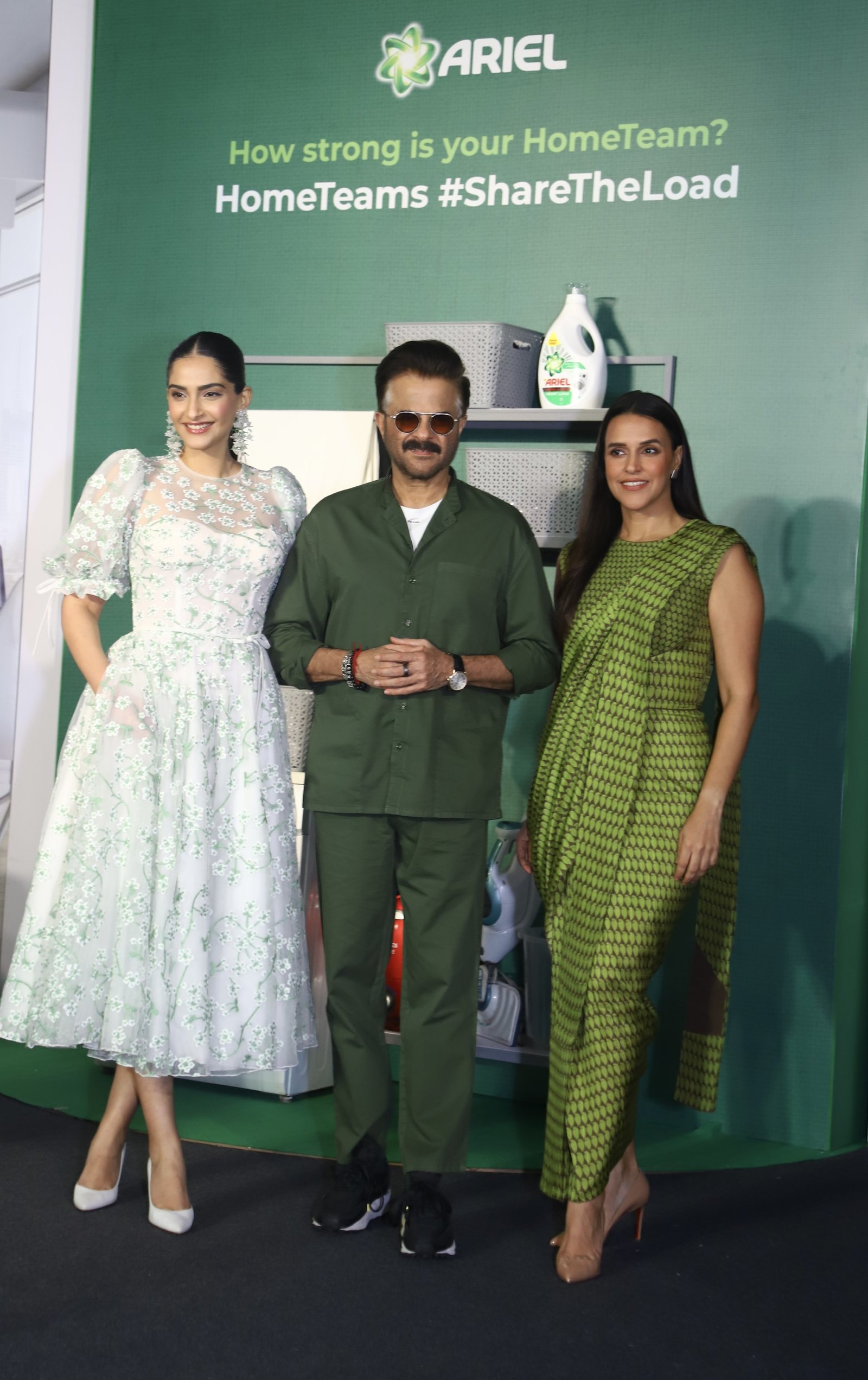 Sonam Kapoor, Anil Kapoor and Neha Dhupia at the launch of Ariel #ShareTheLoad film