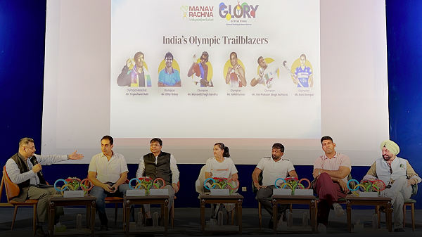 To cheer for the cherished alumni and celebrate the sportsmanship and Olympic excellence, Manav Rachna Educational Institutions (MREI) proudly unveiled its groundbreaking initiative, Glory of 5 Rings recently. Glory of 5 Rings sets the stage for an inspiring lead-up to the Paris Olympics, embodying MREI’s unwavering commitment to nurturing the next generation of sports heroes and celebrating the spirit of the Games. The launch event featured a dynamic discussion forum by the distinguished Olympians, including Yogeshwar Dutt, Dilip Tirkey, Manavjit Singh Sandhu, Om Prakash Singh Karhana, and Rani Rampal, meticulously moderated by Mr. Digvijay Singh Deo from WION Sports.