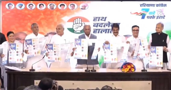 हरियाणा चुनाव: कांग्रेस का ‘गारंटी पत्र’ जारी , महिलाओं को हर माह दो हजार,गरीबों को सौ गज जमीन