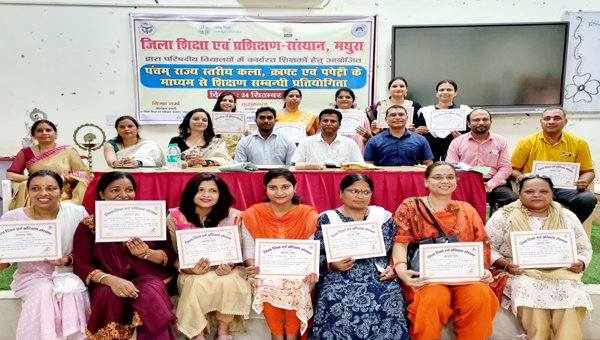 मथुरा। जिला शिक्षा एवं प्रशिक्षण संस्थान के सभागार में “पंचम राज्य स्तरीय कला, क्राफ्ट और पपेट्री के माध्यम से शिक्षण संबंधी” प्रतियोगिता 2024 का आयोजन किया गया। शुभारंभ डायट प्राचार्य राजेंद्र बाबू तथा जिला बेसिक शिक्षा अधिकारी सुनील दत्त ने किया । प्रतियोगिता में बेसिक के प्राथमिक एवं उच्च प्राथमिक स्तर के शिक्षकों ने प्रतिभाग किया।