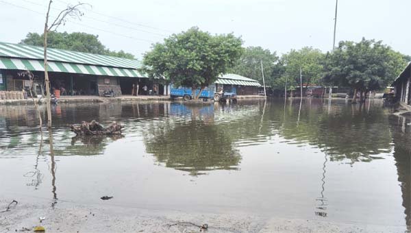 तीन दिन पूर्व हुई तेज बरसात से हाइवे का नाला ओवर फ्लो हो गया। मंडी परिसर हाइवे के लेवल से नीचा है ऐसे में गंदा पानी मंडी परिसर में घुस गया। नाले का गंदा पानी व्यापारियों की दुकानों, सड़क, किसानों की फसल नीलामी के लिए बने फड़ों पर एक-एक फुट तक भर गया है। बरसात बंद होने बाद भी पानी निकासी न होने से नाराज व्यापारी मंडी सचिव कार्यालय पहुंचे।