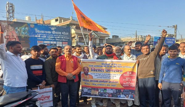 रैली रेतिया बाजार होते हुए कटरा बाजार मथुरा मार्ग पुलिस चौकी के समीप नेहरू पार्क पर समापन हुआ। इस दौरान कार्यकर्ताओ ने जमकर बांग्लादेश मुर्दाबाद के नारे लगाये।