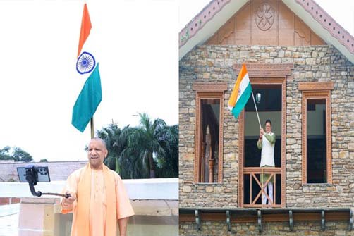 गुजरात के मुख्यमंत्री भूपेंद्र पटेल ने भी अपने आवास पर तिरंगा फहराकर सोशल मीडिया प्लेटफॉर्म ‘एक्स’ पर लिखा, “गुजरात समेत पूरे देश में ‘हर घर तिरंगा’ अभियान बड़े उत्साह के साथ मनाया जा रहा है। प्रधानमंत्री नरेंद्र मोदी ने देशवासियों से इस अभियान के तहत अपने घरों, कार्यालयों व अन्य स्थानों पर तिरंगा फहराकर देशभक्ति की भावना प्रदर्शित करने का आह्वान किया है। इसी के तहत मैंने अपने आवास पर तिरंगा फहराया और भारत माता की जय-जयकार की। आप सभी तिरंगा फहराकर देशभक्ति के इस अभियान में अवश्य भाग लेंगे। ‘हर घर तिरंगा’ अभियान के अंतर्गत उत्तराखंड के मुख्यमंत्री पुष्कर सिंह धामी ने मुख्यमंत्री आवास में तिरंगा फहराया। उन्होंने लिखा, “शासकीय आवास पर ‘हर घर तिरंगा’ अभियान का हिस्सा बनकर राष्ट्रध्वज तिरंगा फहराया। प्रधानमंत्री नरेंद्र मोदी की प्रेरणा से प्रारंभ हुआ यह जनांदोलन करोड़ों देशवासियों के भीतर राष्ट्रगौरव और देशभक्ति का भाव जागृत कर रहा है। प्रदेश के सभी नागरिकों से आग्रह है कि इस स्वतंत्रता दिवस पर अपने घर, प्रतिष्ठान, कार्यस्थल और संस्थानों पर तिरंगा पूर्ण सम्मान एवं गौरव के साथ फहराएं। स्वाधीनता के लिए अपने प्राण न्योछावर करने वाले अमर सेनानियों को स्मरण कर नमन करें और तिरंगे के संग अपनी तस्वीर लेकर ‘हर घर तिरंगा वेबसाइट’ पर साझा कर इस महाअभियान का हिस्सा बनें।”