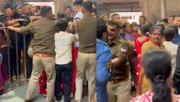 वृंदावन। मंगलवार सुबह ठाकुर बांकेबिहारी मंदिर में अलीगंज से आए श्रद्धालु परिवार और पुलिसकर्मियों के बीच जमकर मारपीट हो गई। मंदिर के एंट्री गेट से बाहर निकलने पर अड़े श्रद्धालु परिवार को रोकने को लेकर हुये विवाद में अन्य श्रद्धालु भी घायल हो गये। पुलिस श्रद्धालुओं को लेकर बिहारीजी पुलिस चैकी पहुंची। घटना के संबंध में अपर पुलिस अधीक्षक नगर राजीव कुमार ने बताया कि मंगलवार प्रातः 10:53 पर कुछ लोगों ने मंदिर में ड्यूटी पर कार्यरत हैड कांस्टेबल राघवेंद्र से अभद्रता मारपीट की जिसके साक्ष्य सीसीटीवी में मौजूद है। घटना के संबंध में मुकदमा दर्ज कर कार्यवाही की जा रही है। आरोपी अभय सिंह,संजय सिंह और राहुल सिंह,सुनीता निवासी अलीगंज एटा को हिरासत में लिया गया है