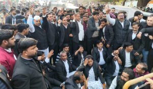 मथुरा कलेक्ट्रेट में चेंबर तोड़े जाने से आक्रोशित अधिवक्ताओं ने किया जोरदार प्रदर्शन, जाम से आम लोग हुए परेशान