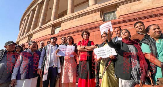 विपक्षी सांसदों ने बृहस्पतिवार को संसद भवन के ‘मकर द्वार’ से थोड़ी दूरी पर एकत्र होकर प्रदर्शन किया। लोकसभा में नेता प्रतिपक्ष राहुल गांधी तथा कांग्रेस महासचिव प्रियंका गांधी विरोध प्रदर्शन में शामिल हुए।