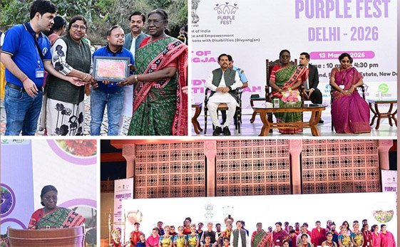 नई दिल्ली । दिव्यांगजनों की प्रतिभा, उपलब्धियों और आकांक्षाओं का जश्न मनाने के लिए 13 मार्च को राष्ट्रपति भवन में ‘पर्पल फेस्ट’ का आयोजन किया गया। दिन भर चले इस उत्सव में 8,000 से अधिक दिव्यांगजनों ने अमृत उद्यान का दौरा किया, जो आज खास तौर पर उनके लिए खोला गया था। उन्होंने दिव्यांगजनों के लिए काम करने वाले विभिन्न संगठनों द्वारा लगाए गए स्टालों के जरिए कई मनोरंजक खेलों और सीखने की गतिविधियों में भी भाग लिया। शाम को राष्ट्रपति द्रौपदी मुर्मु ने समारोह में शिरकत की और राष्ट्रपति भवन के खुले रंगमंच में दिव्यांगजनों द्वारा प्रस्तुत सांस्कृतिक प्रस्तुतियों का आनंद लिया।