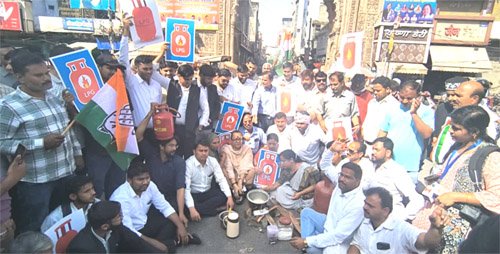 गैस सिलेंडर की बढ़ती कीमतों और आपूर्ति संकट को लेकर कांग्रेस ने किया होलीगेट पर प्रदर्शन