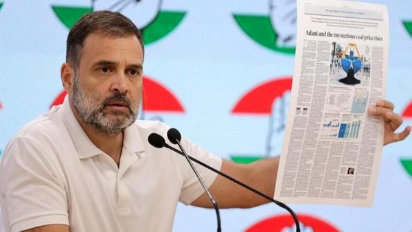 नई दिल्ली । कांग्रेस के पूर्व अध्यक्ष राहुल गांधी ने बुधवार को अडाणी समूह पर कोयले के आयात में ज्यादा कीमत दिखाकर 12 हजार करोड़ रुपये की अनियमितता का आरोप लगाया और कहा कि 2024 में उनकी पार्टी को केंद्र में सरकार बनाने का मौका मिला तो इस कारोबारी समूह से जुड़े मामले की जांच कराई जाएगी।