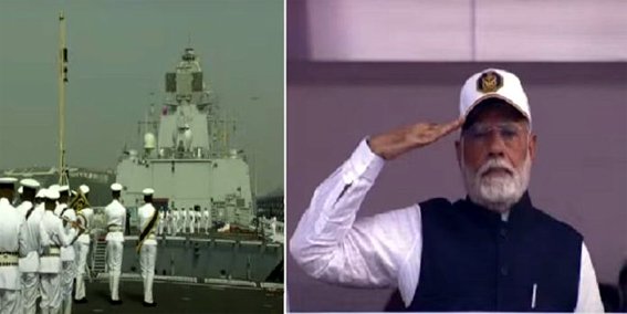 प्रधानमंत्री मोदी की उपस्थिति में तीन बड़े युद्धपोत नौसेना में हुए शामिल