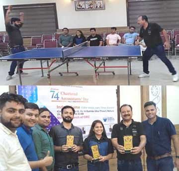 लडकियों में सीए नेहा यादव ने दो राउण्ड में हर्षिता खण्डेलवाल को हराकर खिताब अपने नाम किया। टेबिल टेनिस प्रतियोगिता में राहुल अग्रवाल खुशी अग्रवाल के अलावा 40 प्रतियोगियों ने भाग लिया। सीए वीक के कार्यक्रम समूचे देश में हो रहे है। व्रांच आफिस पर चेयरमैन अनुराग खण्डेलवाल सचिव राहुल चौधरी स्पोर्टस डे कन्वीनर सुनील, अश्वनी खण्डेलवाल पुरूस्कार वितरण कार्यक्रम में मौजूद रहे।