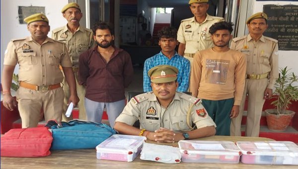 एसपी सिटी मार्तंड प्रकाश सिंह ने बताया कि जमुनापार पुलिस, स्वाट और सर्विलांस टीम ने संयुक्त कार्यवाही करते हुये जमुनापार क्षेत्र से 26/27 और 30/31 अगस्त की रात्रि में हुयी नकबजनी की घटना में वांछित तीन शातिर चोर तनुज उर्फ तनुआ पुत्र नन्द कुमार निवासी शाहपुर ठठोई थाना इगलास जिला अलीगढ, अंकित शर्मा पुत्र संजय शर्मा निवासी बारह सैनी मौहल्ला सासनी थाना सासनी जिला हाथरस, शुभम पुत्र स्व. सीताराम निवासी शाहपुर ठठोई थाना इगलास जिला अलीगढ को ढहरूआ फाटक से सिद्धार्थ नगर जाने वाले रास्ते से गिरफ्तार किया है। ये शातिर चोर दुकान की छत से पटिया काटकर चोरी की घटना को अंजाम देते थे।