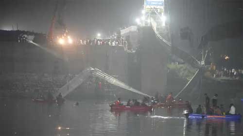 मोरबी (गुजरात) । गुजरात के मोरबी में झूला पुल गिरने से मरने वालों की संख्या सोमवार सुबह तक बढ़कर 141 हो गई। इसकी जानकारी राजकोट रेंज के पुलिस महानिरीक्षक अशोक यादव ने मीडिया को दी। हालांकि गृह राज्य मंत्री हर्ष संघवी के अनुसार मरने वालों की संख्या 132 है, जबकि 2 लोगों का पता नहीं चल पाया है।