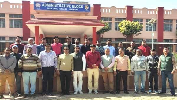 मथुरा। पुरानी पेंशन बहाली की मांग को लेकर बी एस ए कॉलेज में उ. प्र. महाविद्यालय विश्वविद्यालय शिक्षक संघ फुफोक्टा के आह्वान पर 14 फरवरी को शांतिपूर्ण ढंग से काली पट्टी बांधकर न्यू पेंशन स्कीम का विरोध किया गया । बी एस ए कॉलेज के सभी शिक्षक साथियों ने एकजुट होकर सरकार से पुरानी पेंशन बहाली की एक स्वर से मांग की। पुरानी पेंशन ही सभी शिक्षकों और कर्मचारियों के हित में है। नई पेंशन योजना के तहत शिक्षकों एवं कर्मचारियों के हित सुरक्षित नहीं है। सेवानिवृत्ति के बाद पुरानी पेंशन ही एक ऐसा आधार है जिसके माध्यम से अपने परिवार का भरण पोषण किया जा सकता है।