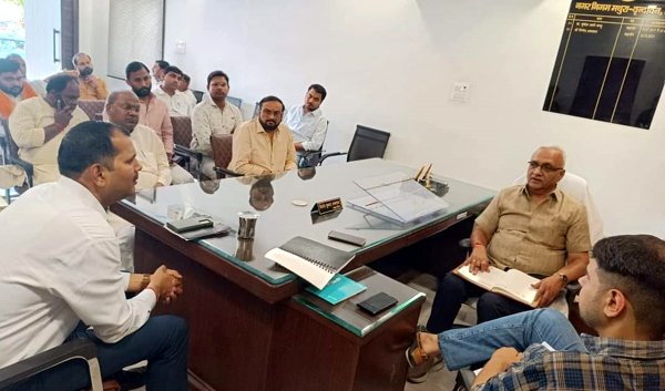 मथुरा। शनिवार को पूर्वान्ह नवनिर्वाचित मथुरा-वृन्दावन नगर निगम के महापौर विनोद अग्रवाल ने जनरल गंज स्थित कार्यालय पहुंचकर विधिवत अपना पदभार ग्रहण किया। महापौर कक्ष में उनका स्वागत नगर आयुक्त अनुनय झा और सहायक नगर आयुक्त क्रांति शेखर सिंह सहित सभी विभागाध्यक्षों द्वारा किया गया। कार्यभार ग्रहण करने के दौरान कई पार्षद और भाजपा के नेता कार्यकर्ता मौजूद रहे। नगर आयुक्त श्री झा द्वारा महापौर श्री अग्रवाल को विस्तृत रूप से निगम की कार्यप्रणाली आदि के बारे में जानकारी दी गई। इस दौरान उनसे निगम के सभी प्रमुख आधिकारियों ने परिचयात्मक भेंट करते हुए उनको बुके भेंट किए ।