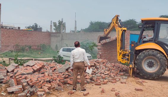 विकास प्राधिकरण ने गोविंद नगर में 3 घंटे चलाया जेसीबी, दो दर्जन प्लाटों की चाहरदिवारी और पक्के निर्माण तोड़े