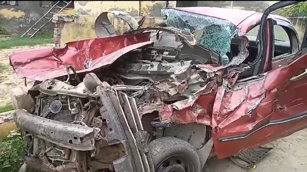 बताया जाता है बुरी तरह पिचकी कार से बमुश्किल शव निकाले गए। कार का नंबर UP 14BC2130 है