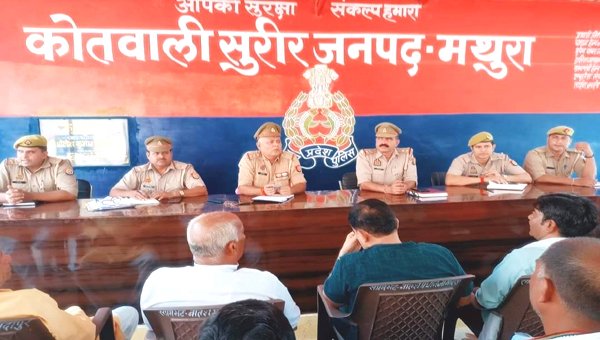 मथुरा। जनपद के ग्रामीण क्षेत्रों में बड़ी संख्या में ऑपरेशन त्रिनेत्र व दृष्टि के तहत पुलिस प्रशासन लोगों से अपने घर-दुकान आदि क्षेत्रों में सीसी कैमरा लगवाने के लिए जगह जगह बैठक कर प्रेरित कर रहा है। इसी क्रम में एक बैठक सुरीर क्षेत्र के ग्राम प्रधान, सभ्रांत नागरिक, व्यापार मंडल और भट्ठा संचालकों के साथ पुलिस की बैठक हुई जिसमें पुलिस ने आपरेशन त्रिनेत्र व दृष्टि के तहत लोगों से अपने घर और प्रतिष्ठान पर सीसी कैमरा लगवाने की बात पर जोर दिया।