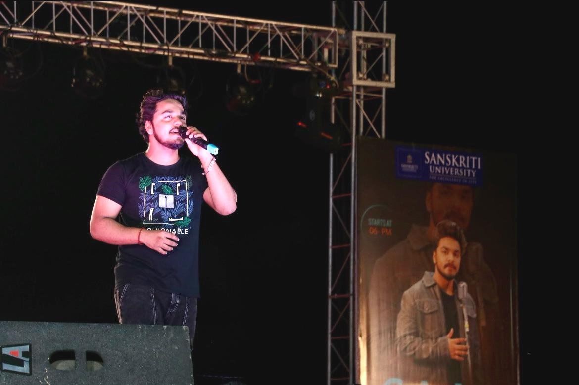 जहां एक और विवि के छात्र और छात्राओं ने दर्शकों को अपनी सुंदर प्रस्तुतियों से बांधे रखा था वहीं मुंबई से आए मोहाली चंडीगढ़ के युवा और बेहद लोकप्रिय गायक साज बट ने मंच पर आते ही अपनी आवाज का जादू बिखेर दिया। लोकप्रिय गीत ‘तू जाने ना, निगाहों में देखो जो बस गया, अफसोस होता है, दिल भी ये रोता है, ये फासले तुमसे ना जाने क्यूं, मिल के भी ना मिले, तुमसे ना जाने क्यूं ‘ जैसे ही साज बट ने गाना शुरू किया वैसे ही संस्कृति विवि का मैदान युवाओं के शोर से गूंज उठा। गाते हुए साज ने बीच में सभी का राधे राधे बोलकर अभिवादन किया तो सारा प्रांगण राधे राधे के बोलों से झंकृत हो गया।