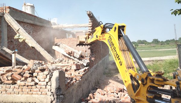 वृंदावन में फिर गरजा योगी बाबा का बुल्डोजर , पक्के मकान तोड़े