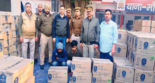 मथुरा। यमुना एक्सप्रेस वे के मांट टोल के समीप की देर रात पुलिस ने अंग्रेजी शराब से लदा एक ट्रक पकड़ा है। ट्रक से 550 पेटी शराब के साथ दो तस्कर भी गिरफ्तार किये है। अवैध शराब लोकसभा चुनाव में खपाने के लिए राजधानी लखनऊ ले जाया जा रहा था।          एसएसपी शैलेश पांडे ने बताया कि लोकसभा चुनाव को लेकर मांट पुलिस व आबकारी पुलिस की संयुक्त टीम यमुना एक्सप्रेस वे के मांट टोल के समीप चैंकिग कर रही थी। इसी दैरान जाबरा टोल प्लाजा के पास एक ट्रक आया। पुलिस ने जांच के लिए रोका। अंदर देखा तो उनकी आंखें खुली रह गईं। इसमें शराब की पेटियां लदी थीं। जांच करने पर प्लास्टिक की झाल जिसमें फोम नीचे छिपाकर रखी 550 पेटियां बरामद हुईं। पुलिस ने ट्रक से तस्कर गौरव जागडा पुत्र अनिल कुमार निवासी ग्राम हरिनगर थाना रामपुरा जिला रिवाडी हरियाणा, सतनाम सिंह पुत्र रसपाल सिंह निवासी ग्राम मकबूलपुरा थाना मकबूलपुरा जिला अमृतसर पंजाब को गिरफ्तार किया है।    पूछताछ में तस्कर ने बताया कि शराब को अमृतसर पंजाब से मांग के आधार पर सस्ते दामों पर लाकर महंगे दामों पर सप्लाई लखनऊ, अयोध्या रोड पर करते हैं। लोकसभा चुनाव के दौरान अवैध शराब खपाने का प्लान था। बरामदा शराब की कीमत करीब 30 लाख रुपये है। गिरफ्तार करने वाली पुलिस टीम में प्र.नि. मांट प्रदीप कुमार, आबकारी निरीक्षक गौरव मिश्रा क्षेत्र 3 चौकी प्रभारी मांट टोल प्लाजा भुवनेश कुमार दीक्षित मौजूद रहे।