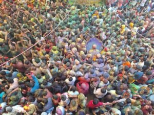 मंदिर प्रांगण में प्रिया प्रीतम दोनों ने ही कुंज में विराजमान होकर होली खेली। इस अवसर पर ब्रज के सुप्रसिद्ध रसियाओं का गायन रसिया मंडल द्वारा किया गया और मुखिया सुधीर कुमार द्वारा सभी भक्तों के ऊपर पिचकारी से रंग और अबीर गुलाल से सभी को सराबोर किया और देश-विदेश से आए सभी तीर्थ यात्रियों ने इसका आनंद लिया। यह क्रम मंदिर में होली तक निरंतर जारी रहेगा। मंदिर में अपर भीड़ के कारण बाजार की मुख्य सड़क पर दर्शन के समय जाम की स्थिति बनी रही।