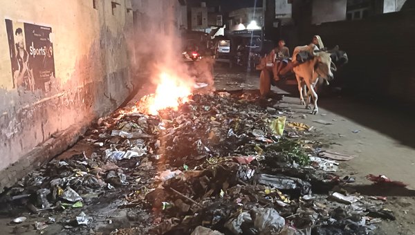 वार्ड नंबर 69 कालीदह स्थित पीली कोठी के पास कूड़े का ढेर विगत कई दिनों से लगा हुआ है जिसमें शनिवार रात को आग लगा दी गई। एक तरफ एनजीटी के द्वारा कूड़े में आग न लगाने के आदेश दिए गए हैं इसके बावजूद भी नगर निगम के कर्मचारी हाथ पर हाथ रखे बैठे हैं। एक प्राइवेट कंपनी के सहारे पूरे वृंदावन की स्वच्छता व्यवस्था चल रही है। निगम बनने के बाद शहर वासियों से टैक्स भरपूर मात्रा में वसूलने के बावजूद भी स्वच्छता व्यवस्था शून्य है। मुख्यमंत्री आगमन की सूचना मिलते ही अधिकारी कम पर लग जाते हैं लेकिन शेष दिनों में उन्हें कम से कोई लेना-देना नहीं है।