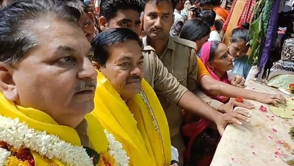 देश में आम चुनाव की भागदौड़ खत्म होने के बाद अब राजनेताओं का रुख धार्मिक नगरी की तरफ हो रहा है। जहां बुधवार की शाम सपा सांसद डिंपल यादव वृंदावन पहुंची थी वहीं आज सुबह पूर्व केंद्रीय सहकारिता राज्यमंत्री बीएल वर्मा ठाकुर श्रीबांके बिहारी मंदिर पहुंचे। इससे पहले वीआईपी पार्किंग पर भाजपा महानगर अध्यक्ष घनश्याम लोधी के नेतृत्व में भाजपाईयों ने उनका स्वागत किया।