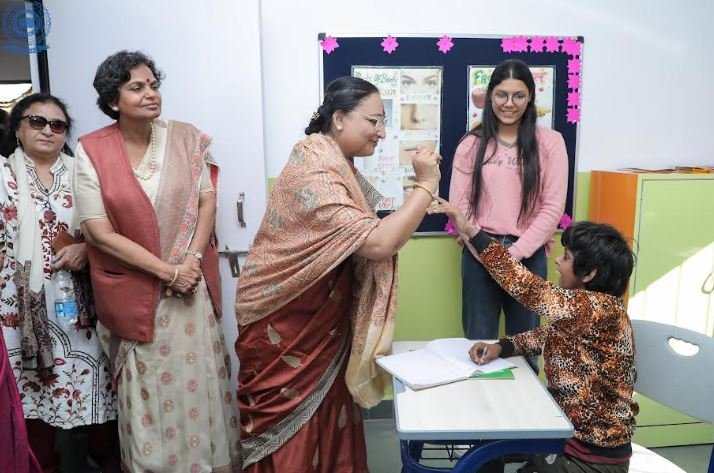 Dr. Malaika Nadda, President of Special Olympics Bharat, interacting with special students at SGTs UDAAN centre