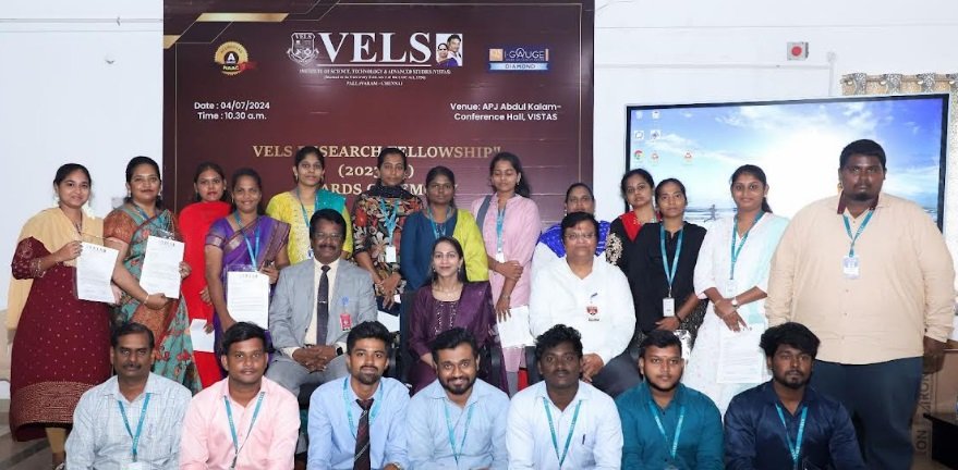 Vels Institute of Science, Technology, and Advanced Studies (vistas.ac.in.), also known as Vels University, is pleased to announce the award of research fellowship grants to 20 distinguished scholars totaling Rs 1.5 crore. The grants aim to support their pursuit of PhD research across 15 different subjects. Each scholar will receive Rs 20,000 per month for a duration of 3 years in recognition of their dedication to advancing academic knowledge and innovation.